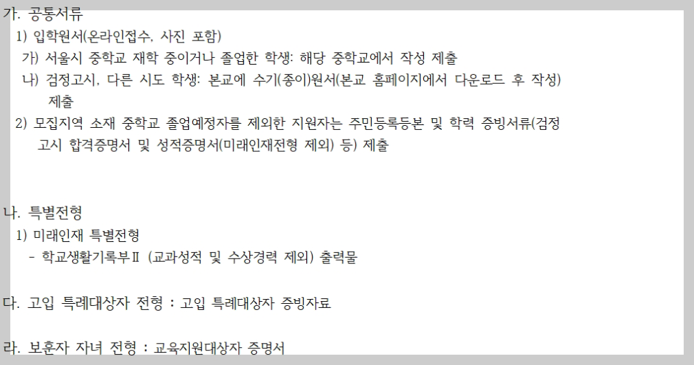 다. 고입 특례대상자 전형 : 일반전형과 동일